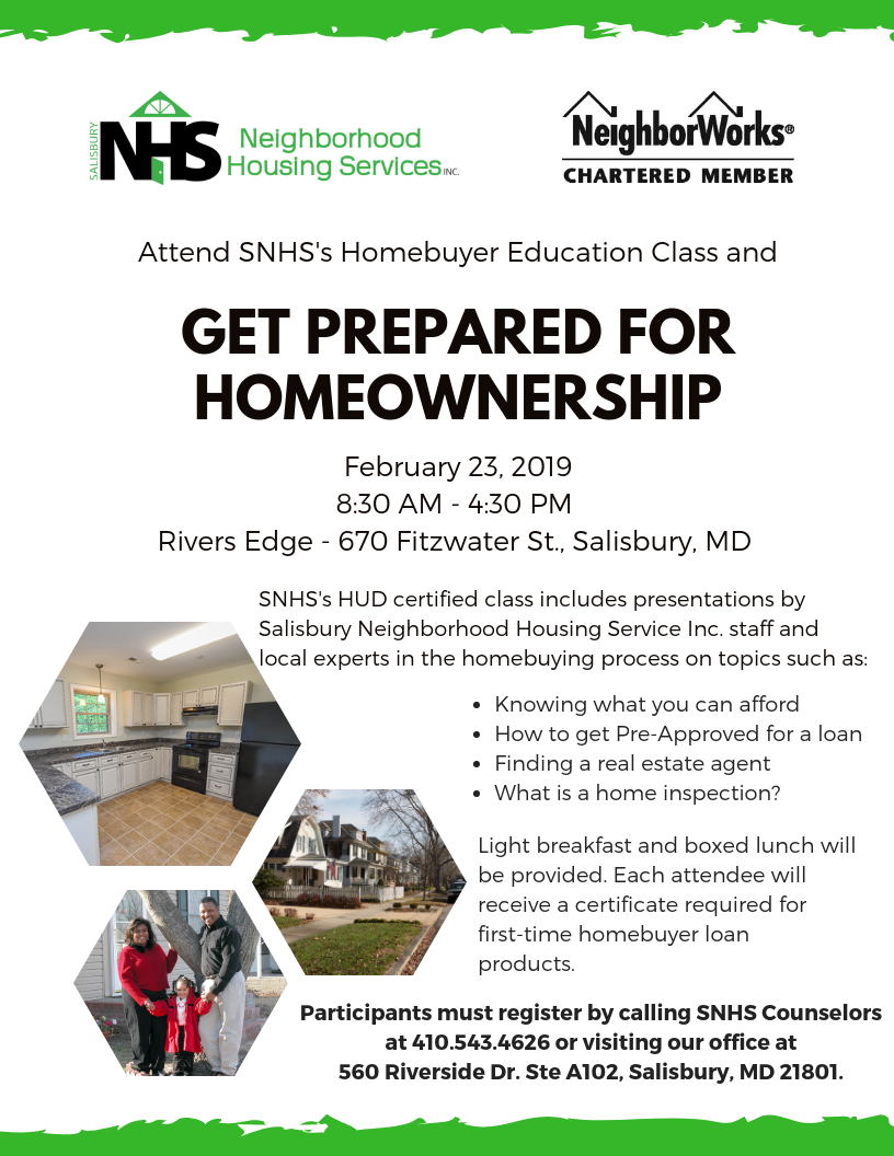 Homebuyers Education Workshop – February 23, 2019 Looking to become a homeowner? Register for this free 8-hour class to learn the A-Z about homeownership.